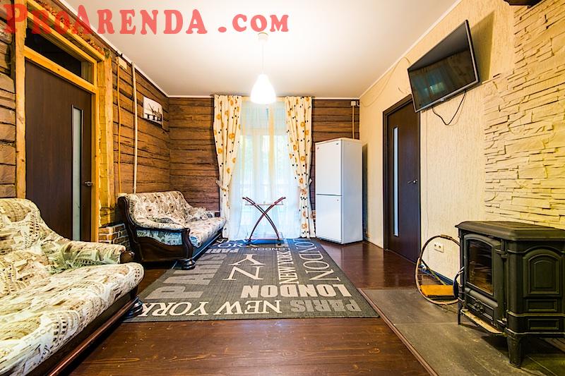 На первом уровне - тёплая, уютная гостиная, обогреваемая ирландским камином, так и приглашает туристов пройти на обустроенную террасу и полюбоваться великолепным видом на собственный, живописный пруд с уточками и хвойный лес. Здесь же на первом уровне дома под Минском, кроме гостиной с камином и панорамной террасы расположены две изолированные спальные комнаты, кухня и сан узел с душевой кабиной.
